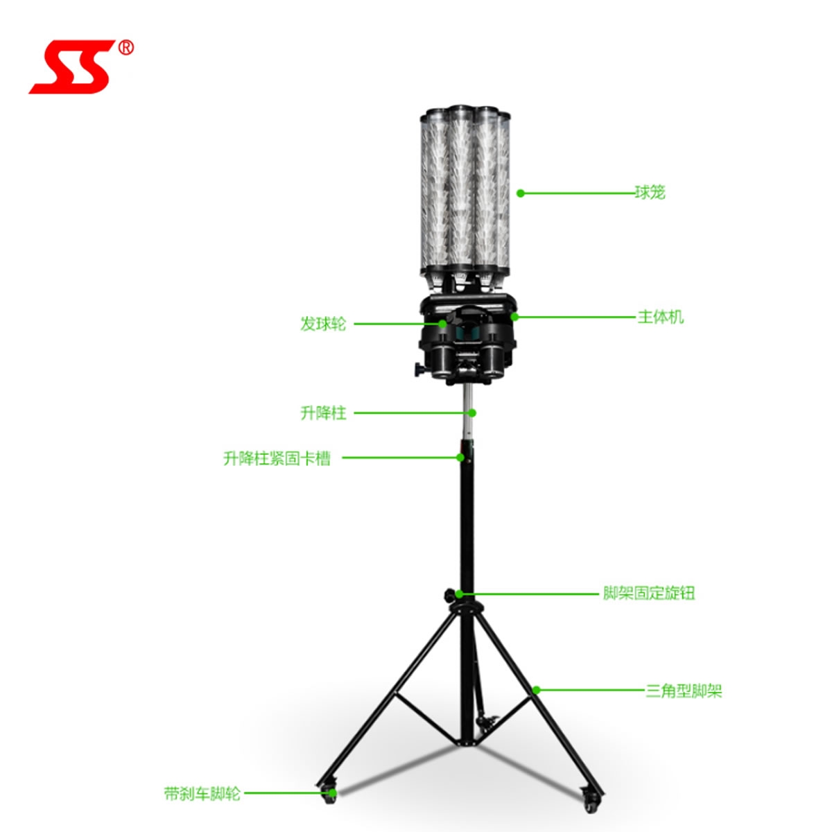 4. 俯仰角調(diào)整系統(tǒng),發(fā)球高度最高可以達(dá)到7米